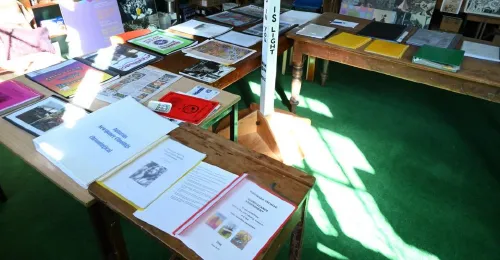 I secured a home for Archives at Aquarius50 at the Community School, or “Comskool”, in the Nimbin Community Centre. The Comskool room was also, and continues to be, the regular meeting place for Friends of Aquarius50, NAFI and other community meetings. President of the Nimbin Community School Judy Hale welcomed the Archives at Aquarius50 in the Comskool space, was present every day and helped in many ways.