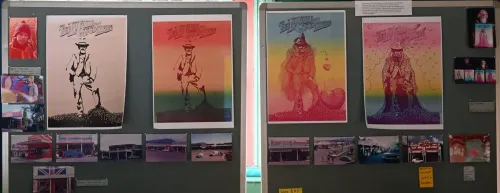 Poster copies from the 1973 festival and their caption from the Rainbow Posters exhibition. Aquarian Archive collection.