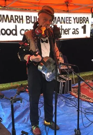 Punters who braved the rain were treated to a smorgasbord of music, performance and dance: from the ancient Indian ragas of Armando’s bansuri and Rodney’s tabla, to Fantuzzi’s Rainbow songs; from the twisted Nimbin pirate-folk of K’Flunk, to the contemporary funk-rap of Moana and Leonards Slippers; from the rich orchestral sound of Orkz Liz, to the Bhangra dance moves of the Bollywood Sisters.