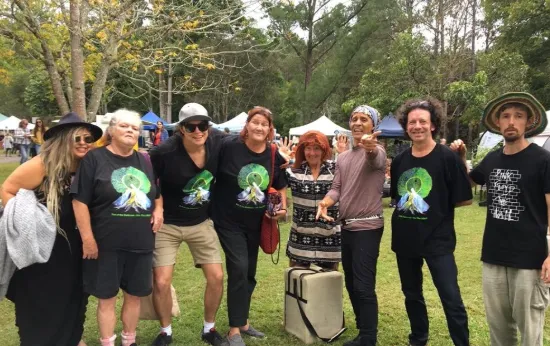 The Nimbin Aquarius Festival caravan – with bells and whistles and rainbow flags – moved to the Channon Craft Market on Sunday to celebrate the Aquarius 50th anniversary and Mother’s Day with passion, grace and random acts of beauty and kindness, laced with hugs and kisses and companionship that the inclement weather failed to dampen.